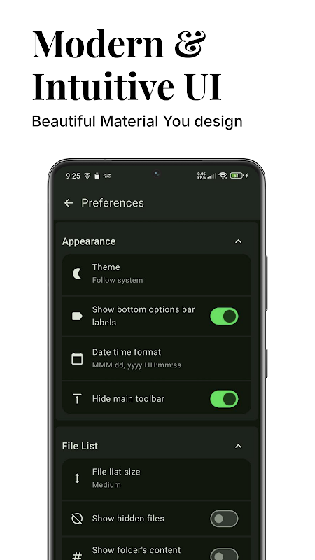 Ambil kendali penuh atas penyimpanan Android Anda dengan pengalaman pengelolaan file terbaik. Pengelola file yang modern, kaya fitur, dan sangat ringan ini menghadirkan pengalaman yang mulus dalam antarmuka Material Design 3 yang menawan.