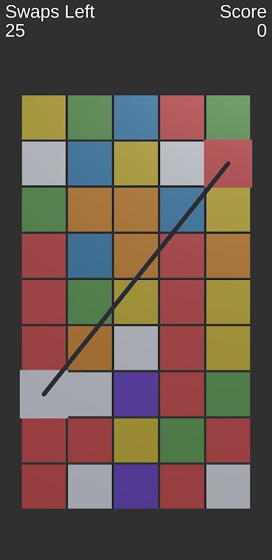 Colored Tiles: Move tiles to match colors and create groups of 3 or more to make the tiles disapperar. Falling doesn't trigger a match. Try to create large groups for more points.