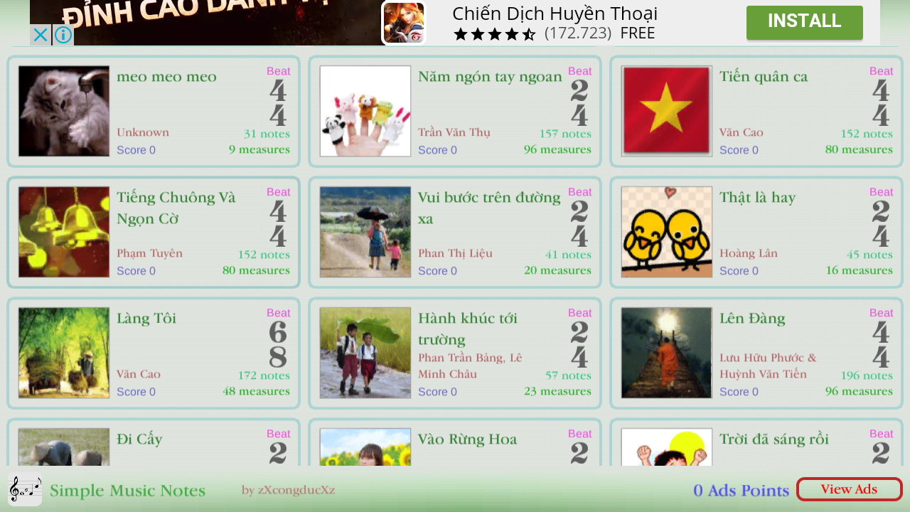 - Unlock music by using ads points, free to play.