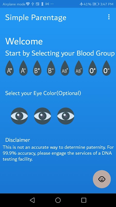 Sebuah aplikasi pendidikan untuk mengajarkan genetika darah dan mata antara orang tua dan keturunan.