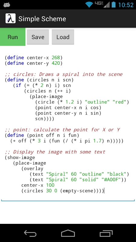 Ever been away from your computer and thought, "Boy, I wish I could be writing Scheme code right now"? Well, now you can! Simple Scheme is a Java/Android implementation of a Scheme-like programming language and syntax highlighted editor.