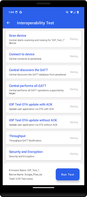 Tes Interoperabilitas Bluetooth – Verifikasi interoperabilitas antara perangkat keras BLE dan perangkat seluler Anda