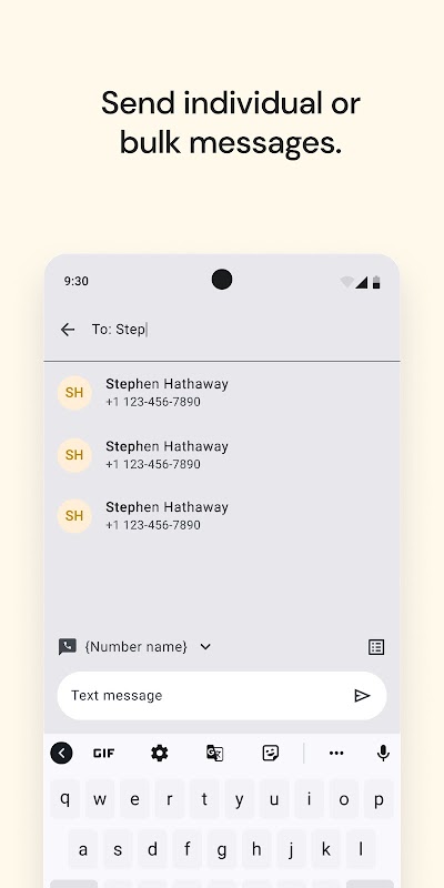 • Kirim pesan SMS individual atau massal dengan cepat ke kontak Anda;