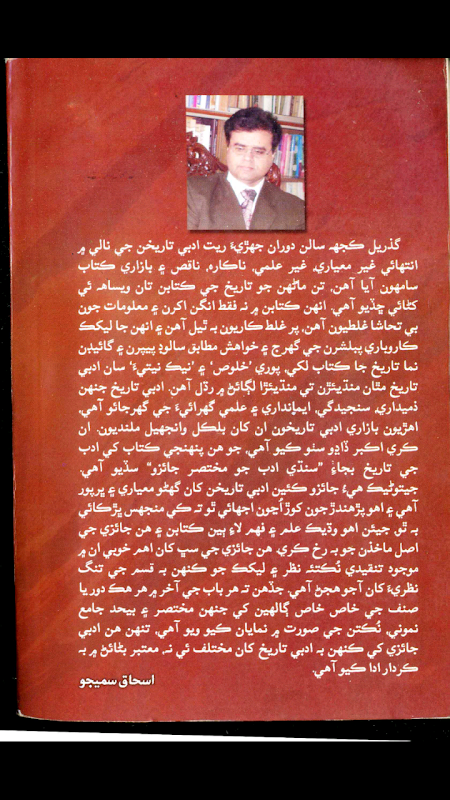ڊجيٽل دنيا ۾ پهريون ڀيرو پڙهو،سنڌي ادب جو مختصر جائزو ليکڪ اڪبر لغاري، بنا ڪنهن ٻي اپليڪيشن جي مدد جي. بهترين ڊزائين ڪيل ڪتاب اپليڪيشن، ساڻ بهترين ۽ مڪمل سنڌي ٻولي ۾ فنڪشن جي.