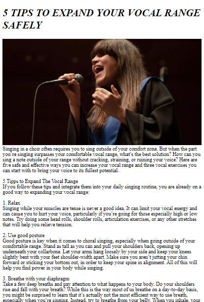 Berusahalah untuk menjembatani jeda vokal, atau passaggio, antar register, menghaluskan transisi, dan menghasilkan suara vokal yang mulus dan terhubung.