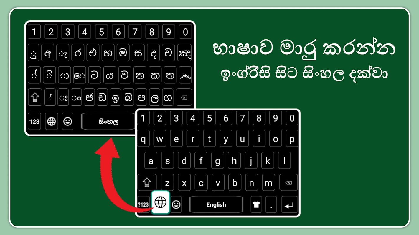 Keyboard Bahasa Sinhala: Sinhala ke Bahasa Inggris dan alihkan Bahasa Inggris ke Keyboard Sinhala kapan saja.
