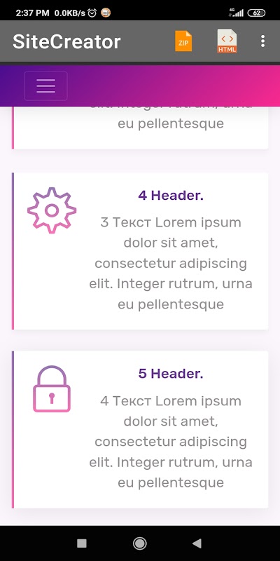 ✔ Dalam versi gratis aplikasi, Anda dapat menggunakan dua templat pertama untuk mengedit. Untuk akses penuh ke semua templat, Anda dapat membeli aplikasi Site Creator Pro versi berbayar dengan harga murah: