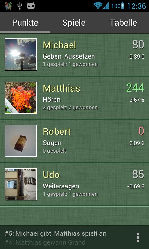 SkatZettel ada permainan Skat. Namun, itu adalah pendamping ideal untuk skat Anda dan membawa Anda dari aritmatika dan menulis. Hanya membuat babak baru dengan banyak pemain (!) - Seperti yang direalisasikan putaran lebih besar. Kemudian Anda hanya perlu menekan pemain terkait dan mengatur properti dari permainan saja menyelesaikan.