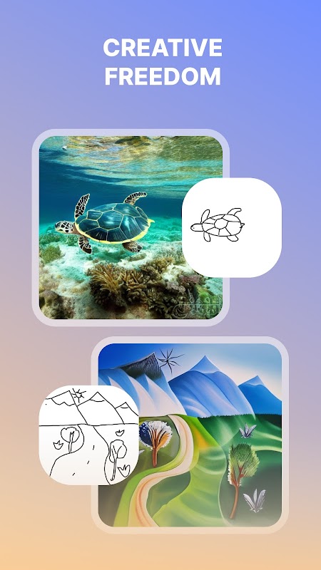 Alat menggambar bertenaga AI yang kuat dari aplikasi ini memudahkan siapa saja untuk menggunakannya, terlepas dari kemampuan artistik mereka. Cukup gambar apa pun yang Anda suka, dan aplikasi akan secara otomatis mengubahnya menjadi gambar profesional. Selain itu, dengan fitur konversi Sketsa ke Karya Seni, Anda dapat melihat kreasi Anda menjadi nyata dalam hitungan detik.