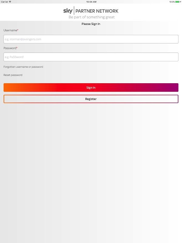 The Sky Jaringan Mitra aplikasi seluler dirancang untuk memberikan dukungan yang Anda butuhkan untuk menjual Sky - untuk memastikan hari Anda berjalan semulus mungkin.