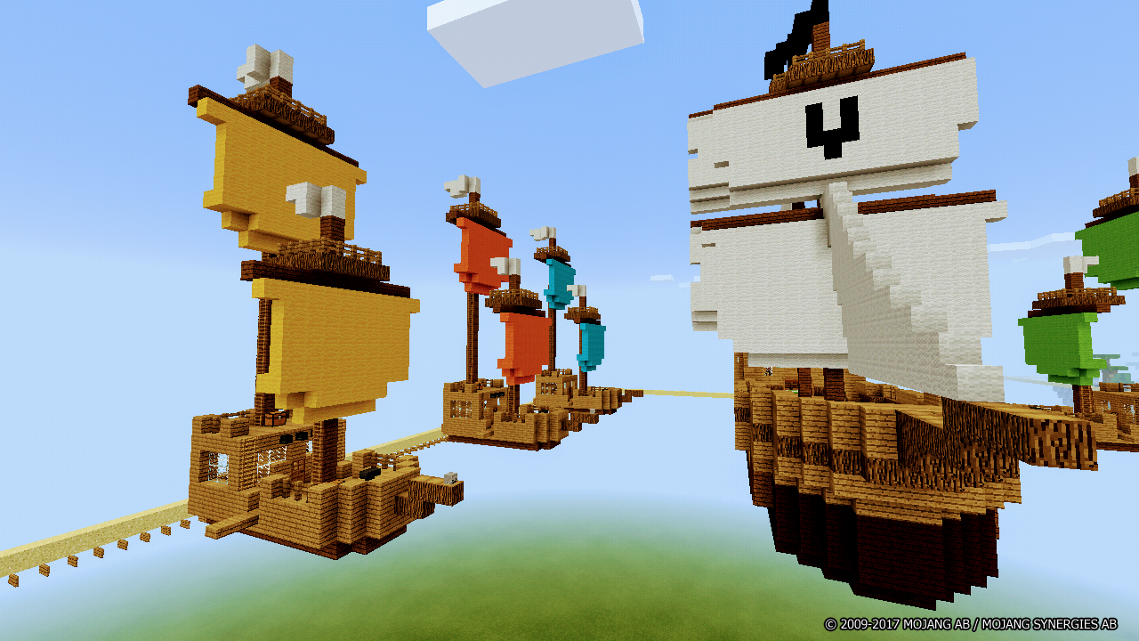 1) Ship SkyWars. On this map, you can try your fighting skills in the TNT mode, in addition to PvP. Here, the players have their own ships, where they can build cannons and strive to destroy their enemies with a help of dynamite.