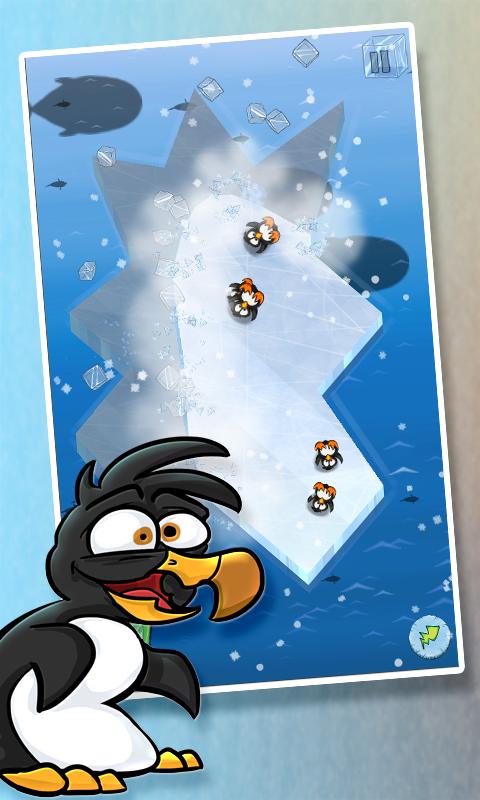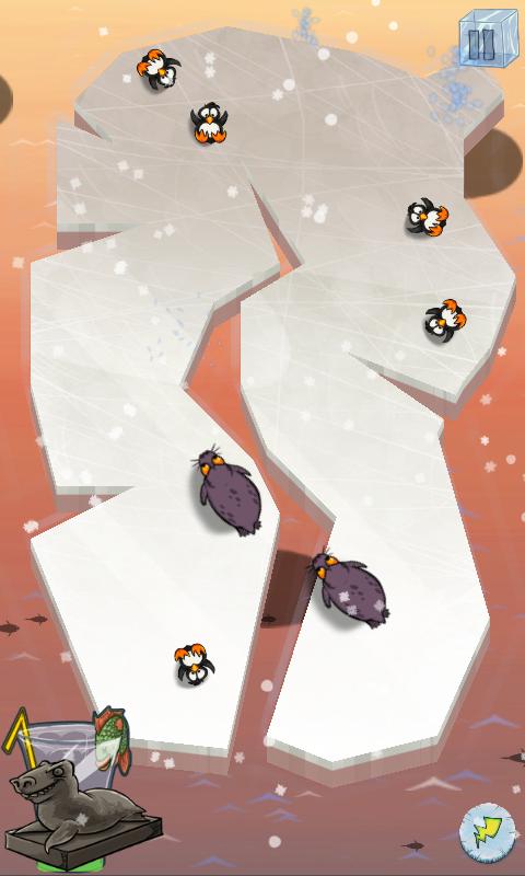 - Use your finger to slice ice. Keep all the penguins on the same side of the ice. Try to use as few slices as you can, to get more powerups!