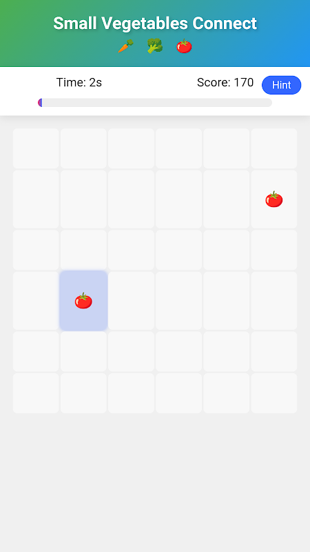 Ini adalah permainan kasual menghubungkan sayuran kecil. Pemain harus mengklik dua sayuran identik secara berurutan untuk menghilangkannya. Jika Anda tidak dapat menemukan sayuran yang ingin dihilangkan, Anda dapat mengklik tombol petunjuk di pojok kanan atas! Jika semua sayuran tersingkir dalam batas waktu, Anda menang, jika tidak, Anda kalah! Datang dan ajak temanmu untuk menantang bersama