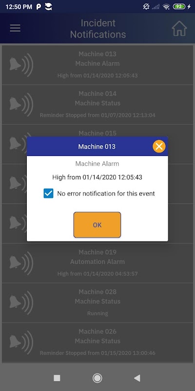 alert -Menerima dan pemberitahuan yang lagi alarm telah terdengar