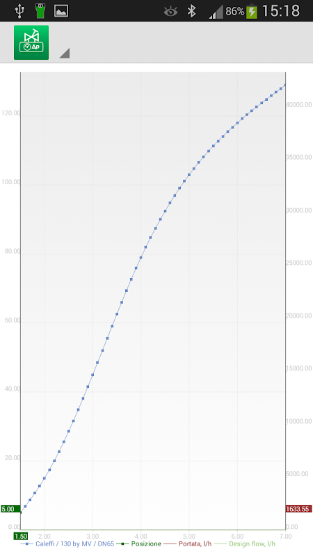 operator memilih daftar yang diinginkan balancing valve tersedia (produsen, model, ukuran dan posisi dengan sesuai Kv). Katup data dan Ap diukur oleh sensor memungkinkan perhitungan aliran yang ditampilkan pada layar ponsel Anda. Jika tidak tersedia dalam database katup yang Anda cocok Anda masih dapat secara manual memasukkan nilai Kv.