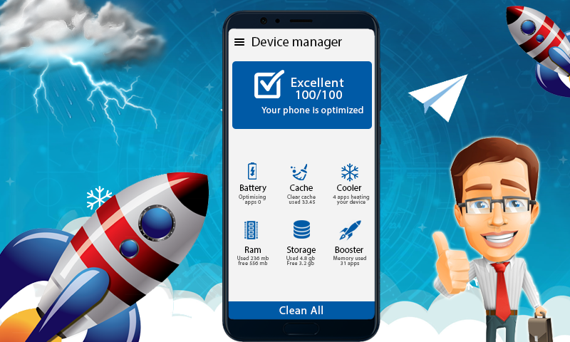 manajer cerdas dan penguat telepon adalah aplikasi yang paling tepercaya dan aman. Android smart manager adalah aplikasi penguat kecepatan dan penghemat baterai. Aplikasi pintar pengoptimal RAM ini menghentikan penghentian baterai dan pengelolaan baterai dengan aplikasi pengisian cepat. Pembersih sampah, penguat telepon memungkinkan Anda meningkatkan waktu penggunaan telepon.