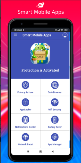 Smart Mobile Security is a powerful android mobile app privacy advisor,safe browser,app locker, wifi security, notification center, battery saver, network boost, app manager. Optimize your Android device and make it fast, easy,safe and convenient.