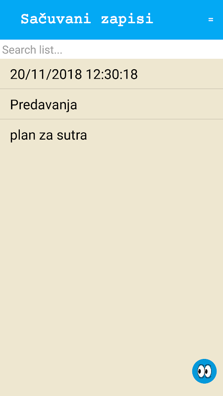 Dostupne opcije su zapisivanje beleški govorom i tastaturom, njihovo čuvanje i deljenje na društvenim mrežama.