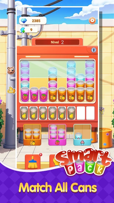Selamat datang di Smart Pack! Dalam permainan mencocokkan yang sangat menenangkan ini, gunakan kebijaksanaanmu untuk mengeklik kaleng minuman berwarna sama dan memasukkannya ke dalam kotak kemasan yang sesuai. Namun, berhati-hatilah karena kompartemen di area penyimpanan terbatas. Manfaatkan ruang terbatas ini dengan bijak agar setiap kemasan lebih efisien!