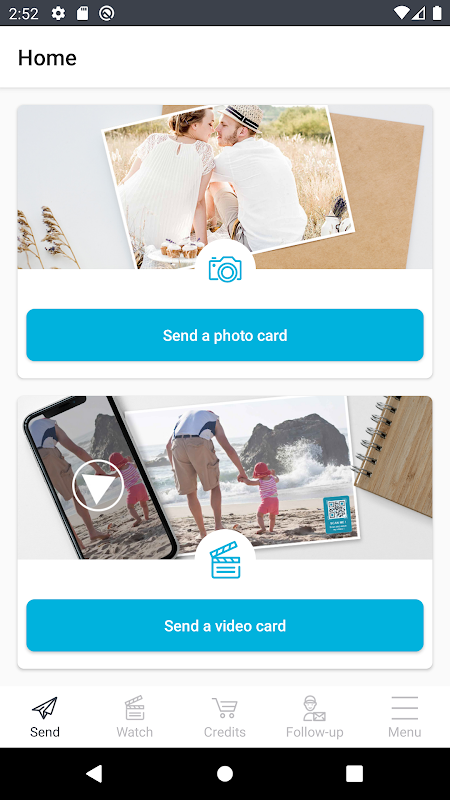 Luncurkan aplikasi dan buat Smart PostCard yang akan dikirim ke koresponden Anda dalam bentuk kartu pos asli yang dicetak di atas kertas glossy.
