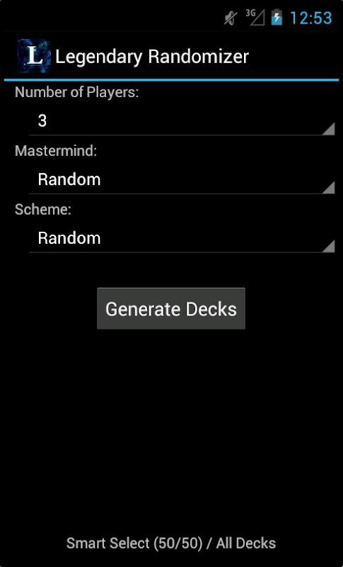 Aplikasi gratis ini memberi Anda dua opsi pemilihan untuk memaksimalkan kesenangan Anda - Anda dapat memilih pemilihan dasar/acak, yang secara acak memilih Dalang, Skema, Penjahat, Antek, dan Pahlawan Anda. Atau, Anda bisa memilih metode "Seleksi Cerdas" yang baru, yang menggunakan karakteristik Mastermind, Skema, Penjahat, dan Antek yang dipilih untuk memilih Pahlawan yang paling sesuai dengan skenario dan karakter yang Anda lawan. Tidak akan ada lagi X-Men saat Blob muncul (secara statistik)!