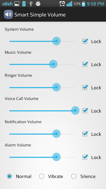* Controllable volumes (System , Music , Ringer , Voice Call , Notification , Alarm)