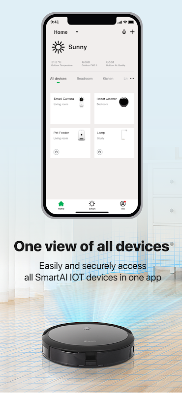Aplikasi SmartAI adalah aplikasi sederhana dan kuat yang dirancang untuk semua produk SmartAI IOT, yang mencakup penyedot debu robot, kamera pintar, pengumpan hewan peliharaan, lampu pintar, dll. Ikuti petunjuk sederhana di layar untuk menambahkan produk SmartAI IOT Anda: