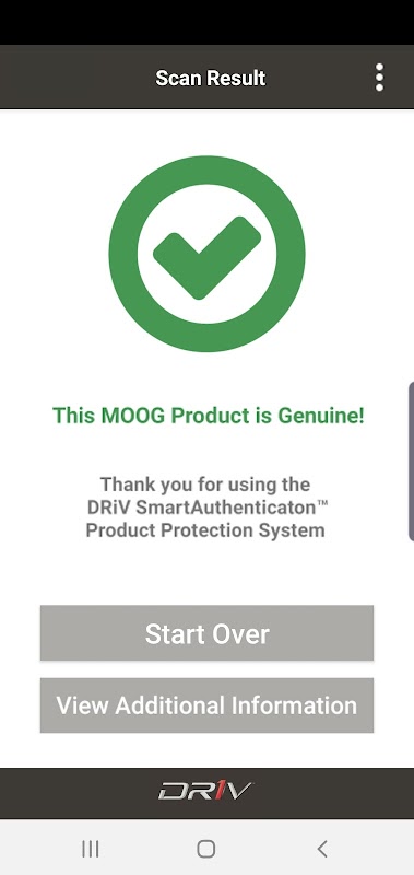 Aplikasi SmartAuthentication ™ yang didukung oleh DRiV adalah alat yang memungkinkan siapa saja untuk memeriksa keaslian produk FP Diesel dan Moog dengan memindai Kode QR dan memvalidasi label kemasan. Aplikasi juga dapat mengarahkan pengguna ke lebih banyak produk atau menawarkan informasi melalui situs perusahaan.