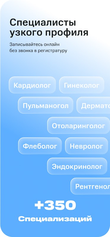 Dengan menggunakan aplikasi ini, Anda tidak hanya dapat membuat janji dengan dokter, tetapi juga untuk tes. Dapatkan diagnosis pada waktu yang nyaman di klinik terdekat. Pendaftaran online di pendaftaran elektronik tersedia sepanjang waktu, tujuh hari seminggu.