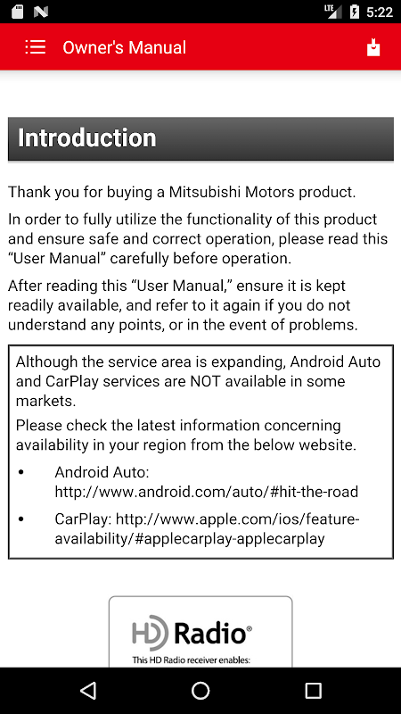 This is a owners manual app for MITSUBISHI MOTORS' new display audio, "Smartphone Link Display Audio", connectable with a smartphone.