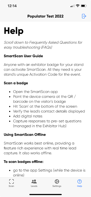 Tingkatkan pengalaman pameran Anda dengan SmartScan, alat terbaik yang dipercaya oleh ribuan peserta pameran untuk mendapatkan prospek berkualitas dengan cepat dan efisien melalui pemindaian lencana.