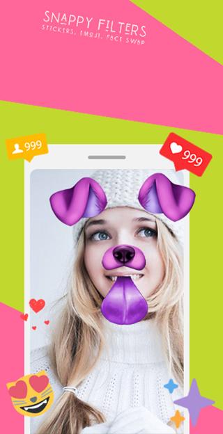 Snappy Filters & Stickers offers you amazing snapchat filters to Make fantastic photos with snapchat face effects and stickers like doggy face, flower crown and more amazing snappy filters all for free and easy to use