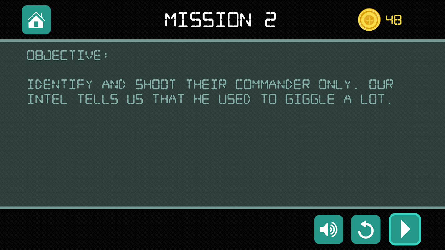 Musuh merebut sebagian negara Anda. Anda adalah orang yang dipilih untuk menyerang musuh kritis sebelum mengirim pasukan darat. Anda hanya punya waktu satu malam untuk menyelesaikan misi ini. Dengan menerapkan kecerdasan dan keterampilan menembak Anda, Anda dapat mewujudkannya.
