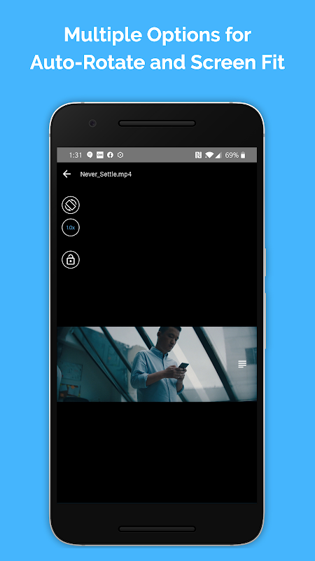 - Beberapa opsi untuk rotasi otomatis dan kesesuaian layar, memungkinkan Anda untuk mengubah ukuran video tontonan berdasarkan pilihan Anda.