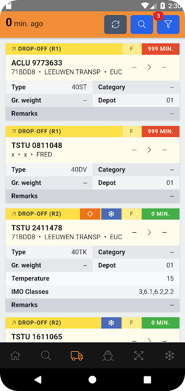 - Perbarui pengukuran sebenarnya dari wadah reefer.