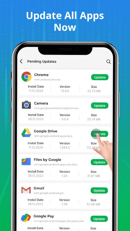 Perbarui Aplikasi Ponsel dengan Pemeriksa Pembaruan Perangkat Lunak baru untuk menjaga ponsel Anda tetap mutakhir. Tingkatkan perangkat lunak untuk semua aplikasi dan tetap terbarui dengan versi baru yang tersedia di Play Store. Aplikasi ini memeriksa pembaruan terbaru dan menjaga aplikasi Anda tetap mutakhir. Ini adalah pembaruan perangkat lunak terbaik dan tercepat untuk aplikasi Android. Pemeriksa pembaruan aplikasi dan game untuk Anda yang meningkatkan aplikasi Android dan perangkat lunak OS Anda. Perangkat lunak yang diperbarui memeriksa pembaruan terbaru atau terkini yang tersedia untuk ponsel pintar Anda dan mengirimkan pemberitahuan peringatan kepada Anda. Dengan satu ketukan, perangkat lunak ini memperbarui semua aplikasi untuk ponsel Android terbaru.