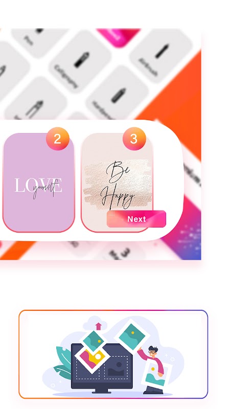 Aplikasi ini juga memungkinkan Anda untuk Menyesuaikan wallpaper sesuai pilihan Anda. Anda dapat menyesuaikan wallpaper dengan cat, stiker, atau teks pada gambar pilihan Anda dari galeri atau wallpaper dari Warna Solid.