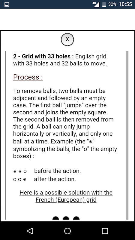 Solitaire adalah permainan yang, seperti namanya, dimainkan sendiri. Pemain menggerakkan pion (biasanya bola atau kartu) di papan agar hanya tersisa satu.