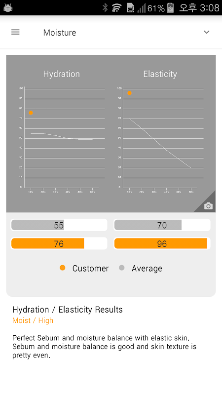 * Kulit - Hidrasi, Sebum, Pori, Bintik coklat, Jerawat, Kerut, Sensitivitas