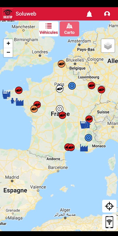 Berkat aplikasi SoluWeb, pengelolaan armada kendaraan Anda akan sangat disederhanakan. Setiap saat, Anda dapat memeriksa posisi seluruh armada kendaraan Anda atau melihat perjalanan kendaraan selama suatu periode. Anda juga akan menerima peringatan sebagai pemberitahuan. Bahkan dimungkinkan untuk memulai rute ke lokasi kendaraan dengan satu klik.