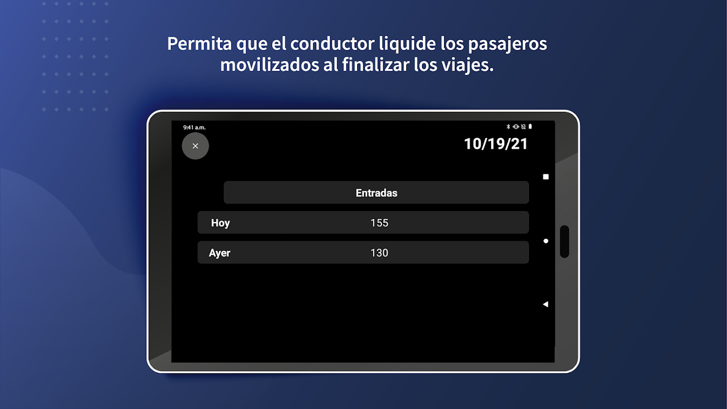 Ubah tablet atau perangkat seluler Anda menjadi terminal data untuk mengirim dan menerima informasi ke dan dari platform AVL, menerima pesan informatif, peringatan keselamatan, informasi tentang rencana perjalanan, penumpang yang dimobilisasi, dan banyak lagi.