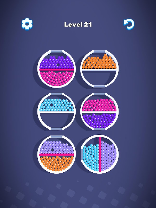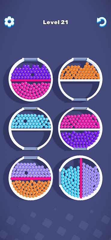 Solve the puzzle by rotating the rings and sorting the balls with the same color.