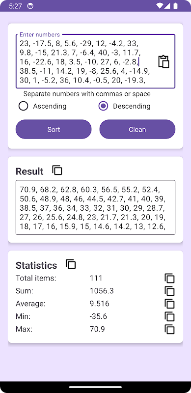 Urutkan angka dengan cepat dan dapatkan data statistik