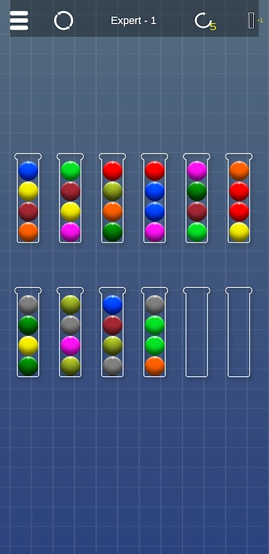✪In this Free Sorting Ball Puzzle Game: Free Color Puzzle Game, you can always restart the level at any point or either you can retrace your steps one by one using the back button