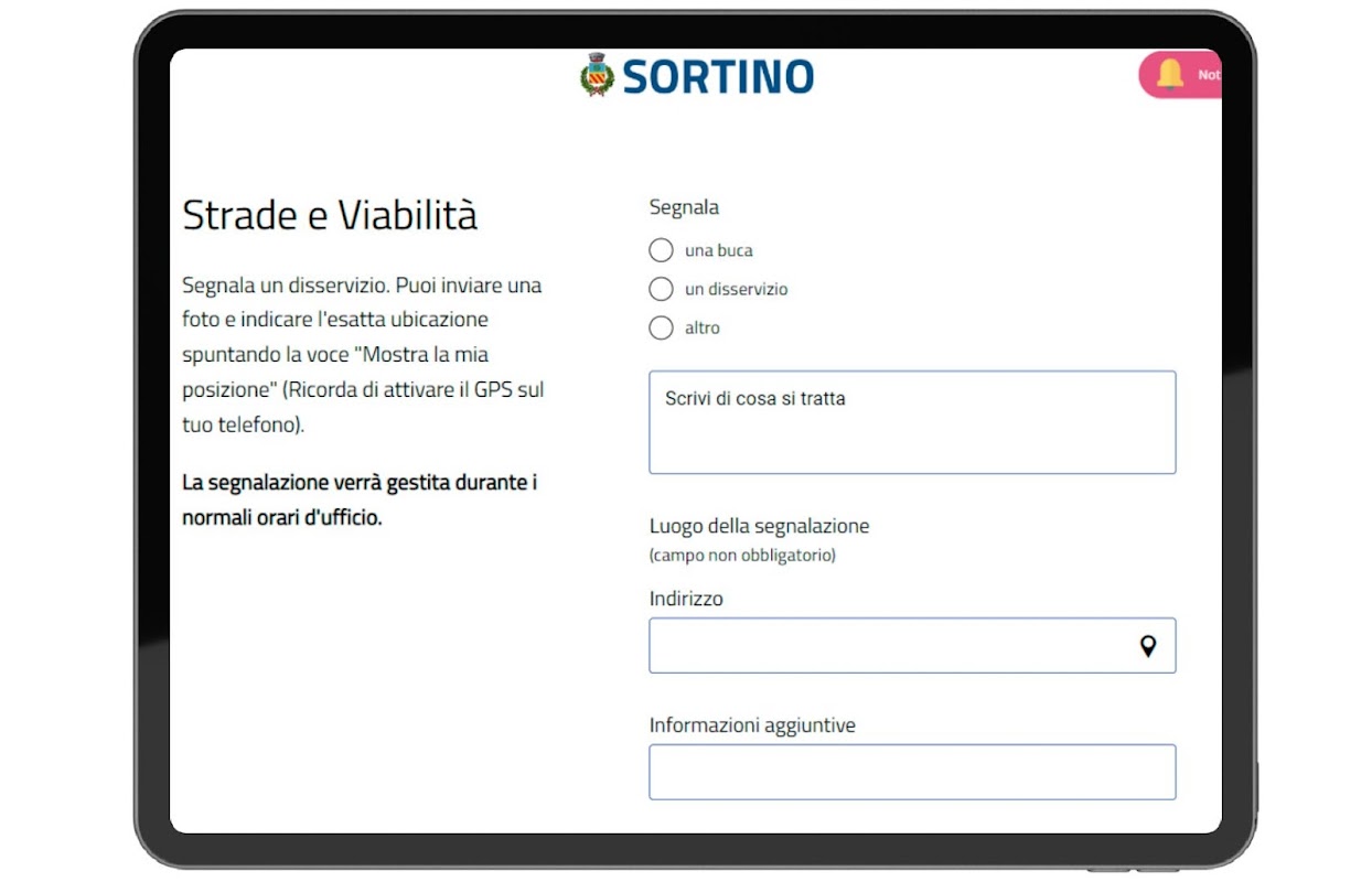Aplikasi ini telah disahkan oleh Pemerintah Kota Sortino.