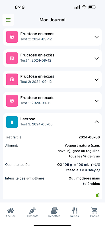 Asisten memandu Anda langkah demi langkah dengan kapsul video oleh ahli diet ahli kesehatan pencernaan dan FODMAP, dengan cara yang sederhana, jelas, dan tepat, agar tidak ada keraguan dan mengikuti protokol dengan benar. Asisten menggunakan algoritme adaptif eksklusif untuk menentukan kuantitas yang akan diuji selama pengujian reintroduksi, berdasarkan gejala individual Anda.