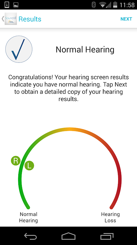 • Hasil Skrining ditampilkan dalam mudah memahami format serta menawarkan pilihan untuk mendapatkan tampilan yang lebih rinci untuk menunjukkan hasil untuk daerah tertentu pendengaran Anda.