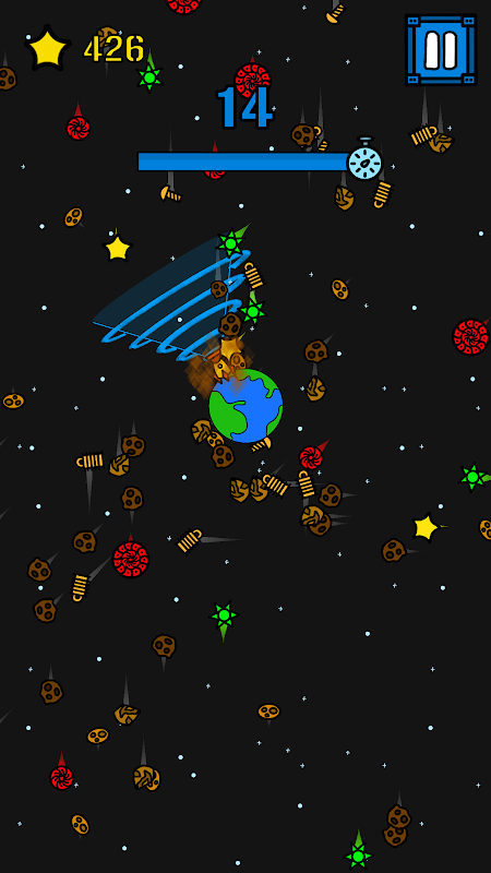 - Sentuh dan tahan untuk bergerak dan menyerap sampah antariksa