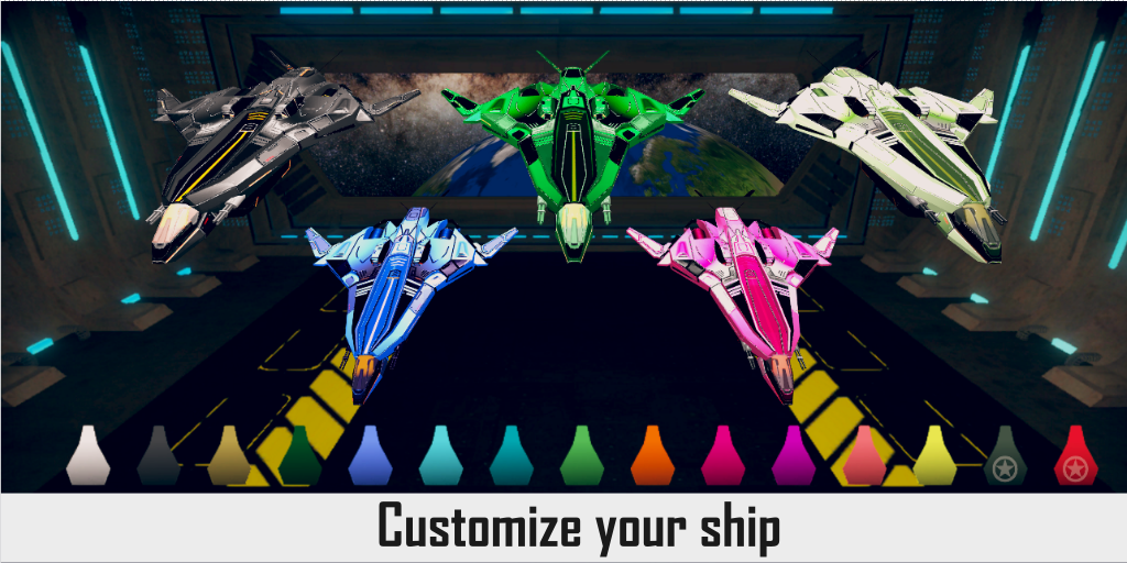 Anda dapat melengkapi pesawat ruang angkasa Anda dengan peningkatan berbeda yang tak terhitung jumlahnya. Beli setiap satu dari lebih dari 80 jenis pesawat ruang angkasa yang berbeda. Pertempuran di lebih dari 500 Planet berbeda saat bepergian ke hampir 100 bintang berbeda. Asteroid juga bisa ditambang saat Anda tidak bertarung.