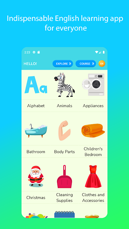 Aplikasi ini dirancang khusus untuk pemula untuk belajar bahasa Inggris dengan konten yang hidup dan penuh warna. Setiap game di aplikasi kami dirancang dengan indah, mudah dimainkan, dan sangat interaktif.